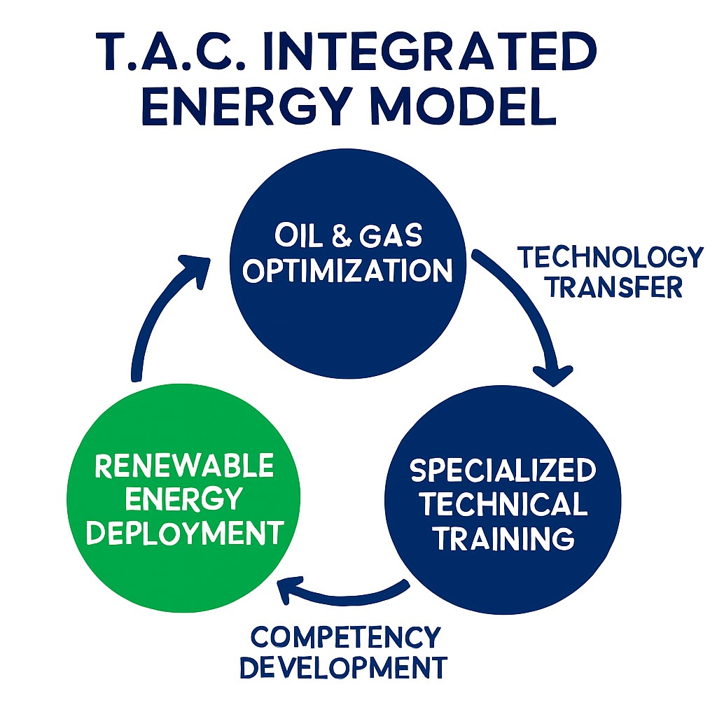 We deploy proprietary digital platforms and advanced engineering methodologies to deliver superior, integrated solutions across three strategic verticals: Oil and Gas Services, Renewable Energy Solutions, and Specialized Technical Training. Our dual-energy mandate ensures we are simultaneously maximizing the Return on Investment (ROI) from existing hydrocarbon assets and actively accelerating the deployment of sustainable energy infrastructure. T.A.C. is dedicated to partnering with national and international energy operators to unlock the full potential of their assets while adhering to the highest standards of HSSE (Health, Safety, Security, and Environment) and operational integrity.